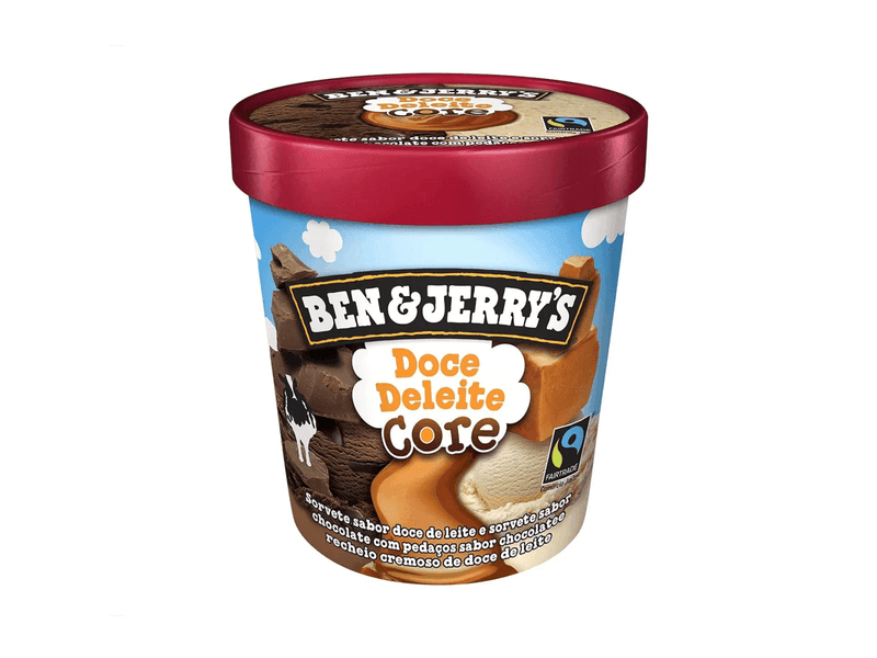 A combinação do sabor Ben&Jerry’s com o doce mais amado do Brasil: doce de leite. Não tinha como essa combinação não ficar perfeita! Uma dose de sorvete geladinho sabor doce de leite, uma dose de sorvete geladinho no sabor chocolate, pedacinhos crocantes de chocolate e um recheio beeeeem cremoso de doce de leite. Doce na medida certa, refrescante como Jen&Berry’s.